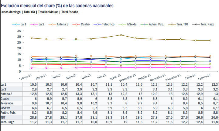 Descarga el informe completo sobre las audiencias de televisión de febrero 2026: