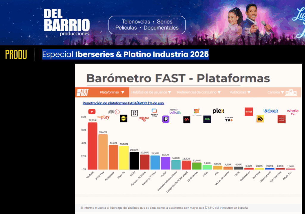 «(…) El nuevo barómetro FAST de la consultora GECA centrado en este universo y que se presentó dentro de las actividades que estos días tienen lugar en Madrid con motivo de Iberseries & Platino Industria, el mayor encuentro de la industria iberoamericana de contenidos de ficción. La intención de este estudio, realizado con una muestra […]